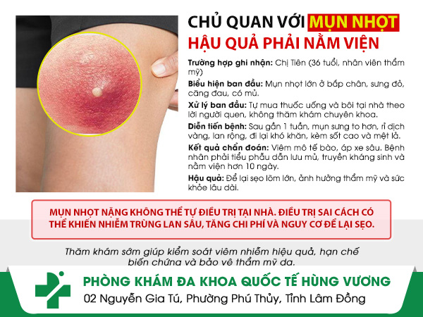 Chỉ từ suy nghĩ “mụn nhọt chắc không sao”, nhiều người đã phải trả giá đắt bằng sức khỏe và thẩm mỹ. Trường hợp dưới đây là một minh chứng điển hình khi sự chần chừ và tự điều trị sai cách khiến tình trạng mụn nhọt tiến triển nặng, để lại hậu quả khó khắc phục.