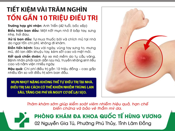 Nhiều người chủ quan, tự ý nặn nhọt tại nhà – đến khi sưng lan rộng, sốt cao mới đi khám thì đã nhiễm trùng nặng – cần dẫn lưu mủ, dùng kháng sinh mạnh.